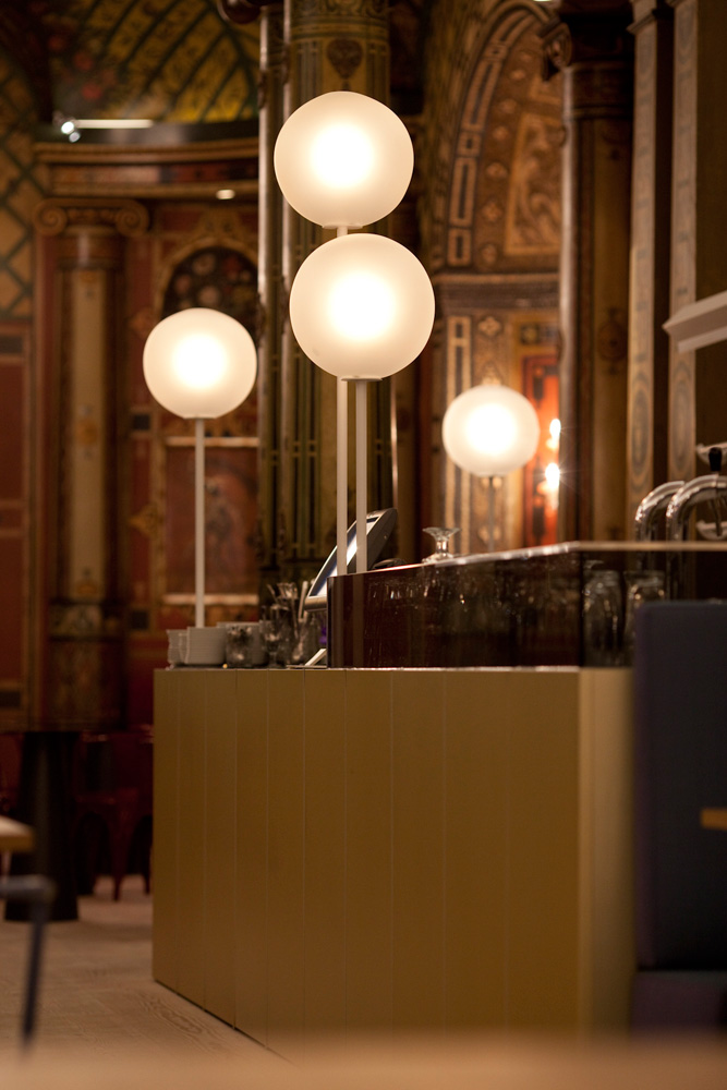 Since any change to the interior’s core is forbidden for preservation grounds, our work focused on creating special pieces of furniture and extensive object families. Finally all interior elements but the chairs were custom designed and produced as one off’s or small series. especially for the project. Amongst these objects is an extensive family of mobile elements: scaled-up rolling plant pots, structures for climbing plants as mobile room dividers and specialized waiter trolleys.