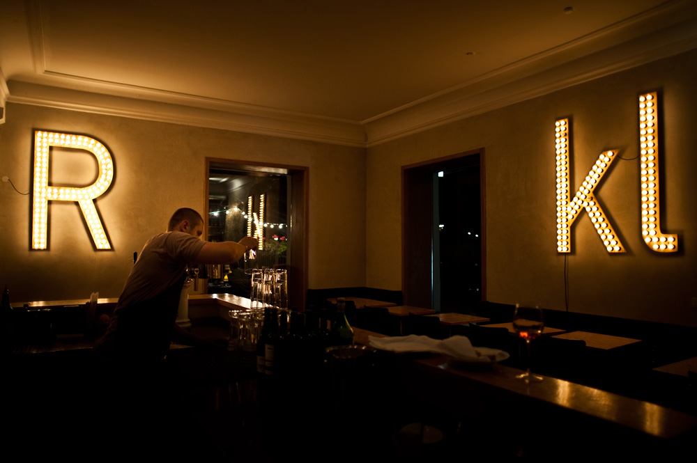Large lighting letters marking the letters R,K,l (Roeckl)did exactly that. They provided the space its needed ground atmospheric lighting, while at the same time being an extra ordinary (and slightly extroverted) element. The letters themselves uses the same Maritime Pine wood as base, on which hundreds of low voltage bulbs are connected.